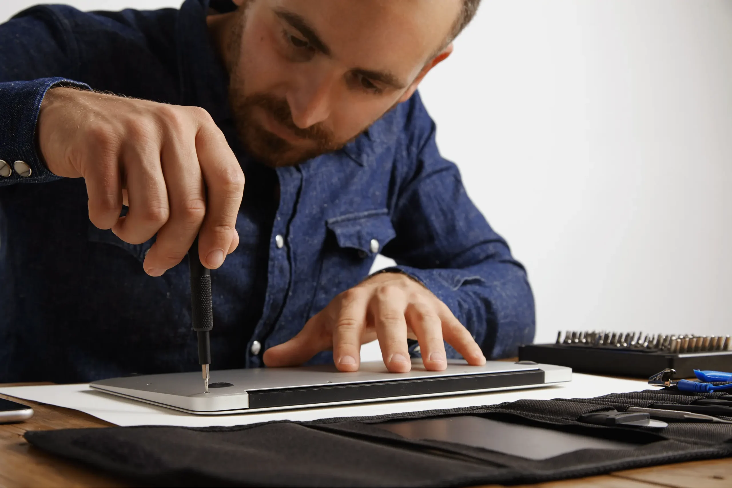 Vi utför skärm- och tangentbordsreparationer, batteri- och laddarbyte, systeminstallation samt service och underhåll av laptops.